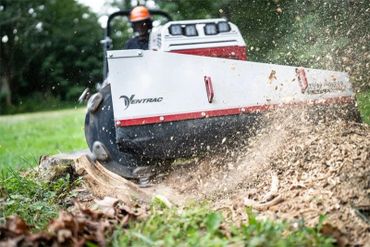 The Ventrac KC220 Stump Grinder features replaceable heavy-duty carbide cutting teeth on a large 22" rotor for removing large or small stumps.